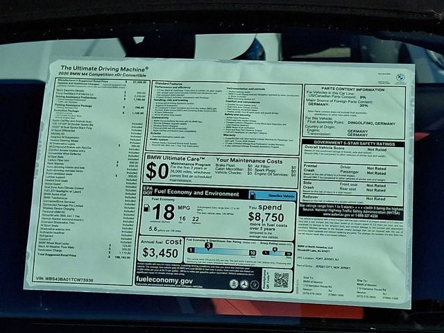 DRIVING ASSISTANCE PROFESSIONAL PACKAGE Distance Control Assist (DCA) w/Steering Assistant, Driving Assistant Professional, Partial Automated Driving, Traffic Jam Assistant, EXECUTIVE PACKAGE Remote Engine Start, Live Cockpit Pro w/Navigation, Galvanic Controls, PARKING ASSISTANCE PACKAGE Parking View w/3D View (Surround View), Parking Assistant Plus, FRONT VENTILATED SEATS. BMW Competition xDrive with Black Sapphire Metallic exterior and Fiona Red/Black interior features a Straight 6 Cylinder Engine with 523 HP at 6250 RPM*.