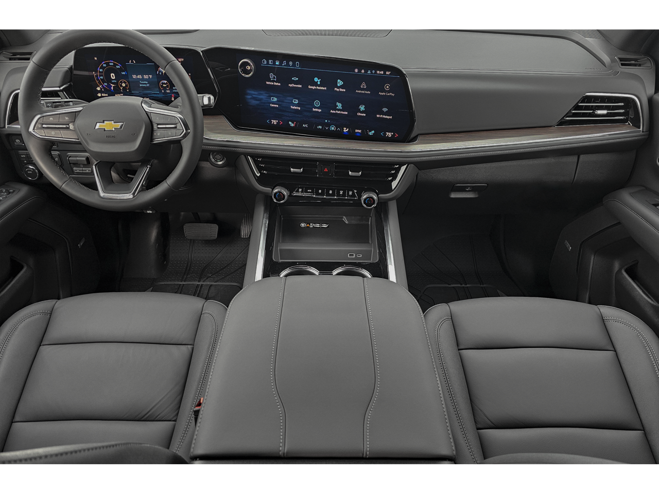 COMFORT PACKAGE includes (A45) memory settings, (UQS) Bose 10-speaker Surround with CenterPoint, (DXR) outside heated power-adjustable, power-folding, body-color mirrors with driver-side auto-dimming and integrated turn signal indicators, (KI3) heated steering wheel, (KA6) second row outboard heated seats, (ATT) second row power 60/40 split-folding bench seats, (AS8) third row power 60/40 split-folding bench seats, (TGE) LED animated headlamps and (TAU) LED animated tail lamps (Also includes (WPL) Luxury Package content. SEATS, SECOND ROW BUCKET, POWER RELEASE, ENGINE, 5.3L ECOTEC3 V8 with Dynamic Fuel Management, Direct Injection and Variable Valve Timing, includes aluminum block construction (355 hp [265 kW] @ 5600 rpm, 383 lb-ft of torque [518 Nm] @ 4100 rpm) (STD), TRANSMISSION, 10-SPEED AUTOMATIC electronically controlled with overdrive, includes Traction Select System including tow/haul (STD), AUDIO SYSTEM, 17.7 DIAGONAL ADVANCED COLOR LCD DISPLAY with Google built-in compatibility (select service plan required, terms and limitations apply), including navigation capability, connected apps, personalized profiles for each drivers settings, Natural Voice Recognition and Phone Integration (STD), LUXURY PACKAGE includes (DD8) Inside rearview auto-dimming mirror, (UG1) Universal Home Remote and (T40) LED front fog lamps. MP3 Player, Privacy Glass, Remote Trunk Release, Keyless Entry, Steering Wheel Controls.