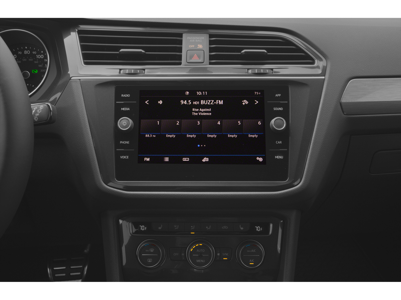 - Radio: Composition Media AM/FM/HD -inc: 8" touchscreen, dual USB input, voice control, 6-speaker sound system, VW App-Connect smartphone integration and interface w/Apple CarPlay, Android Auto and MirrorLink, capability for in-vehicle 4G LTE enabled Wi-Fi (cellular data plan required; includes limited trial), capability for VW Car-Net services (capabilities for certain services vary; requires enrollment or subscription), Bluetooth® connectivity (for compatible devices), SiriusXM satellite radio w/limited-time trial subscription and USB charging-only port facing 2nd row seat