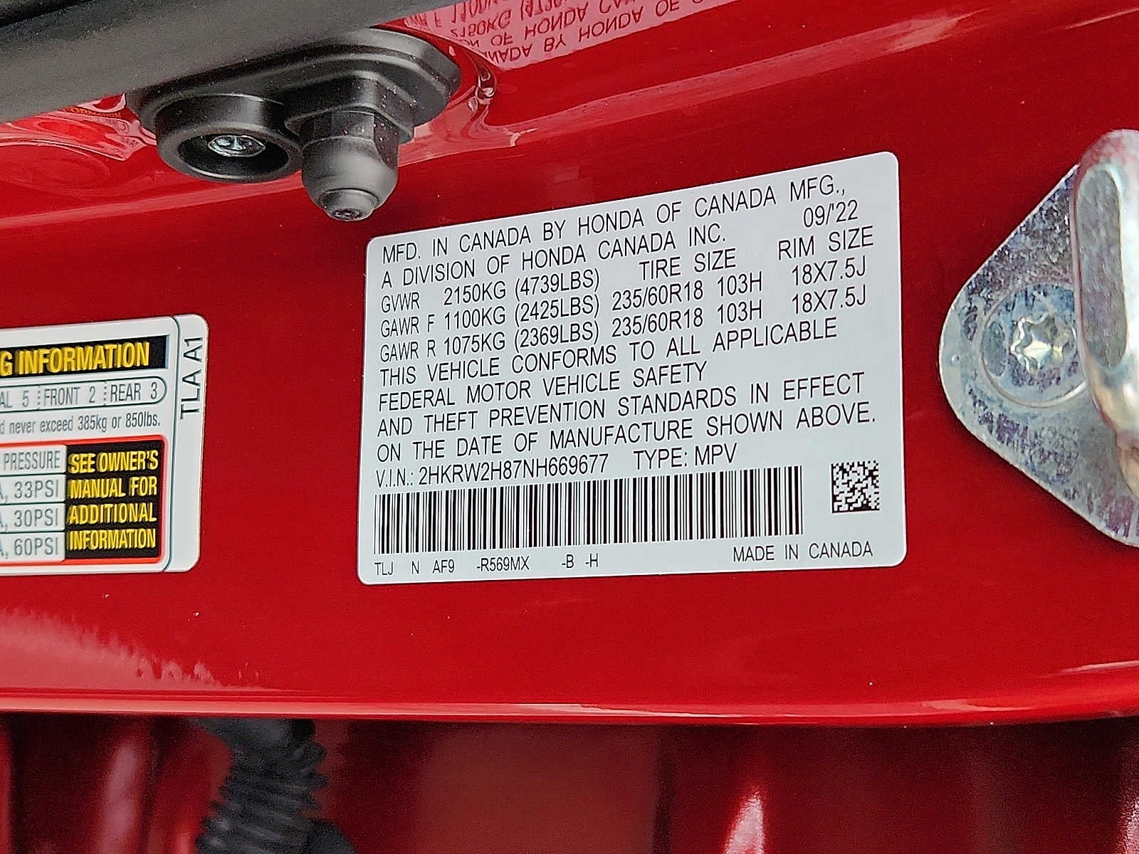 - Tires: 235/60R18 103H All-Season