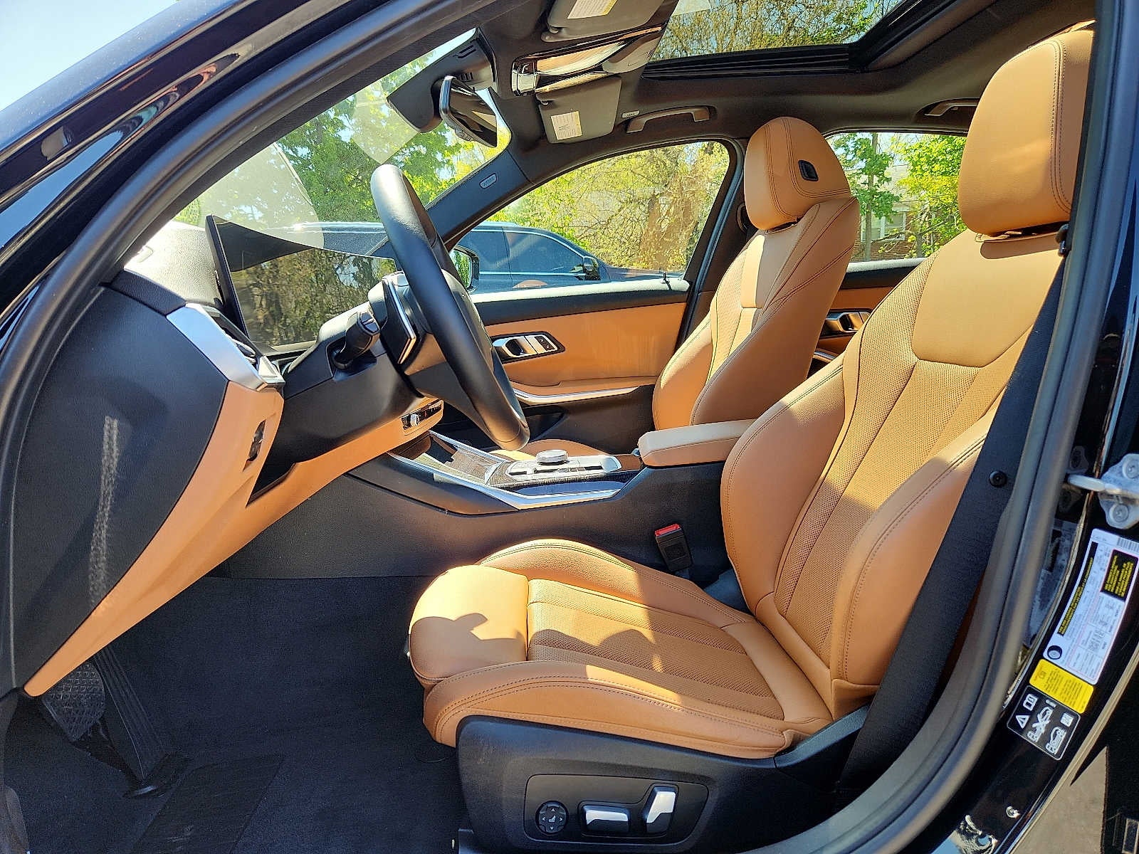 PREMIUM PACKAGE Comfort Access Keyless Entry, Driver Lumbar Support, BMW Curved Display w/HUD, Heated Steering Wheel, Heated Front Seats, DRIVING ASSISTANCE PACKAGE Lane Departure Warning, Active Blind Spot Detection, Park Distance Control, Active Driving Assistant, REMOTE ENGINE START. BMW 330i xDrive with Jet Black exterior and Cognac interior features a 4 Cylinder Engine with 255 HP at 5000 RPM*. Serviced here, Non-Smoker vehicle