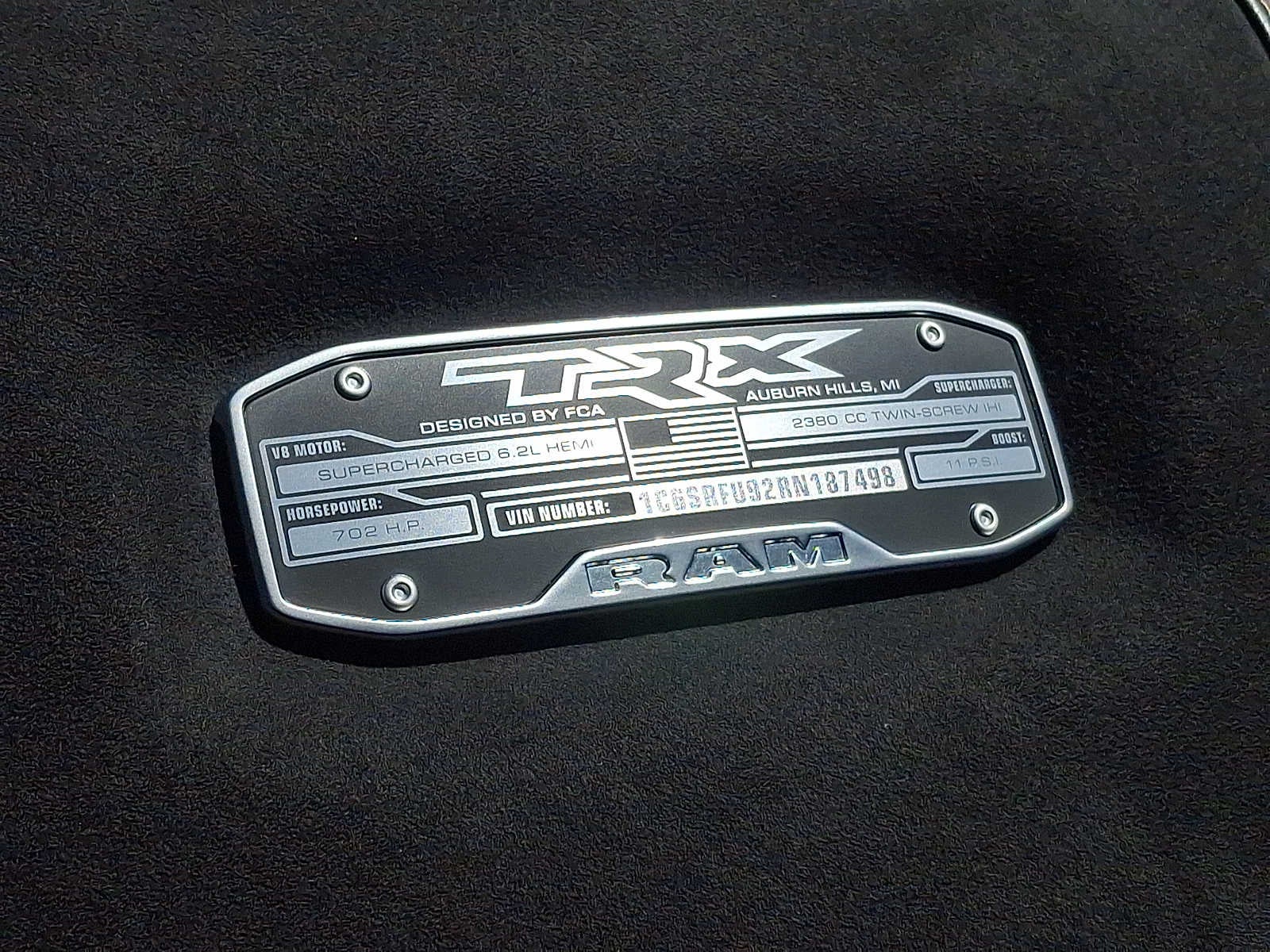 6.2L SUPERCHARGED V8 FINAL EDITION Adaptive Cruise Control w/Stop & Go, Leather/Carbon Flat-Bottom Steering Wheel, Wheels: 18 x 9 Bead Lock Aluminum, MOPAR 4 Adjustable Cargo Tie-Down Hooks, Trailer Reverse Steering Control, Trailer Tire Pressure Monitoring System, Pedestrian Emergency Braking, MOPAR TRX Hood Graphics, MOPAR Spray In Bedliner, Trailer Light Check, Patina Accent Stitching, Special Edition Console Badge, Lower Two Tone Paint, MOPAR Deployable Bed Step, TRX Special Edition Side Graphics, Real Carbon Fiber Interior Accents, Special Edition Hood Badge, Lane Keep Assist, TRX LEVEL 2 EQUIPMENT GROUP Full Length Premium Upgraded Floor Console, Rear Window Defroster, Surround View Camera System, Blind Spot & Cross Path Detection, Rain Sensitive Windshield Wipers, LED CHMSL Lamp, ParkSense Front/Rear Park Assist w/Stop, Power Adjustable Pedals w/Memory, Pick-Up Box Lighting, MOPAR Bright Pedal Kit, IP LED Ambient Light Pipe, Rear Underseat Compartment Storage, Trailer Brake Control, Accent Color Door Handles, Head Up Display, Heated Second Row Seats, Heated Steering Wheel, Leather/Suede Flat-Bottom Steering Wheel, Wireless Charging Pad, Driver/Passenger Wrapped Assist Handles, Ventilated Rear Seats, Rear 60/40 Folding Split Recline Seat, Ventilated Front Seats, Remote Tailgate Release, harman/kardon® 19 Speaker Premium Sound, Premium Wrapped IP Bezel, 2-Door, DUAL-PANE PANORAMIC SUNROOF Dome Dual LED Reading Lamp, MOPAR OFF-ROAD STYLE RUNNING BOARDS, TRANSMISSION: 8-SPEED AUTOMATIC (8HP95) (STD), ENGINE: 6.2L SUPERCHARGED HEMI V8 SRT (STD). Ram TRX with Bright White Clearcoat exterior and Black interior features a 8 Cylinder Engine with 702 HP at 6100 RPM*.