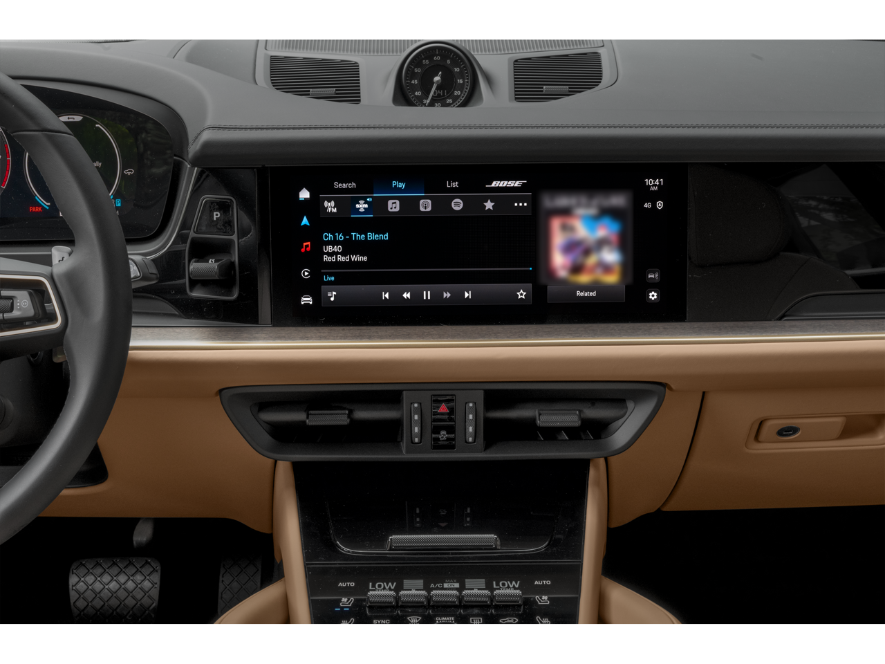 - Radio: Porsche Communication Management (PCM) -inc: navigation module, smartphone compartment w/wireless charging (up to 15W), voice control, sound package plus w/10 speakers and a total output of 150 watts, smartphone integration (both Apple CarPlay and Android Auto are supported) and SiriusXM w/360L (w/3 month trial subscription)