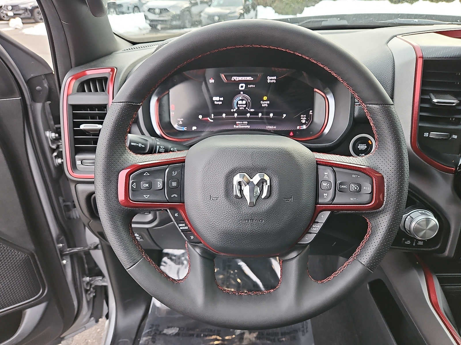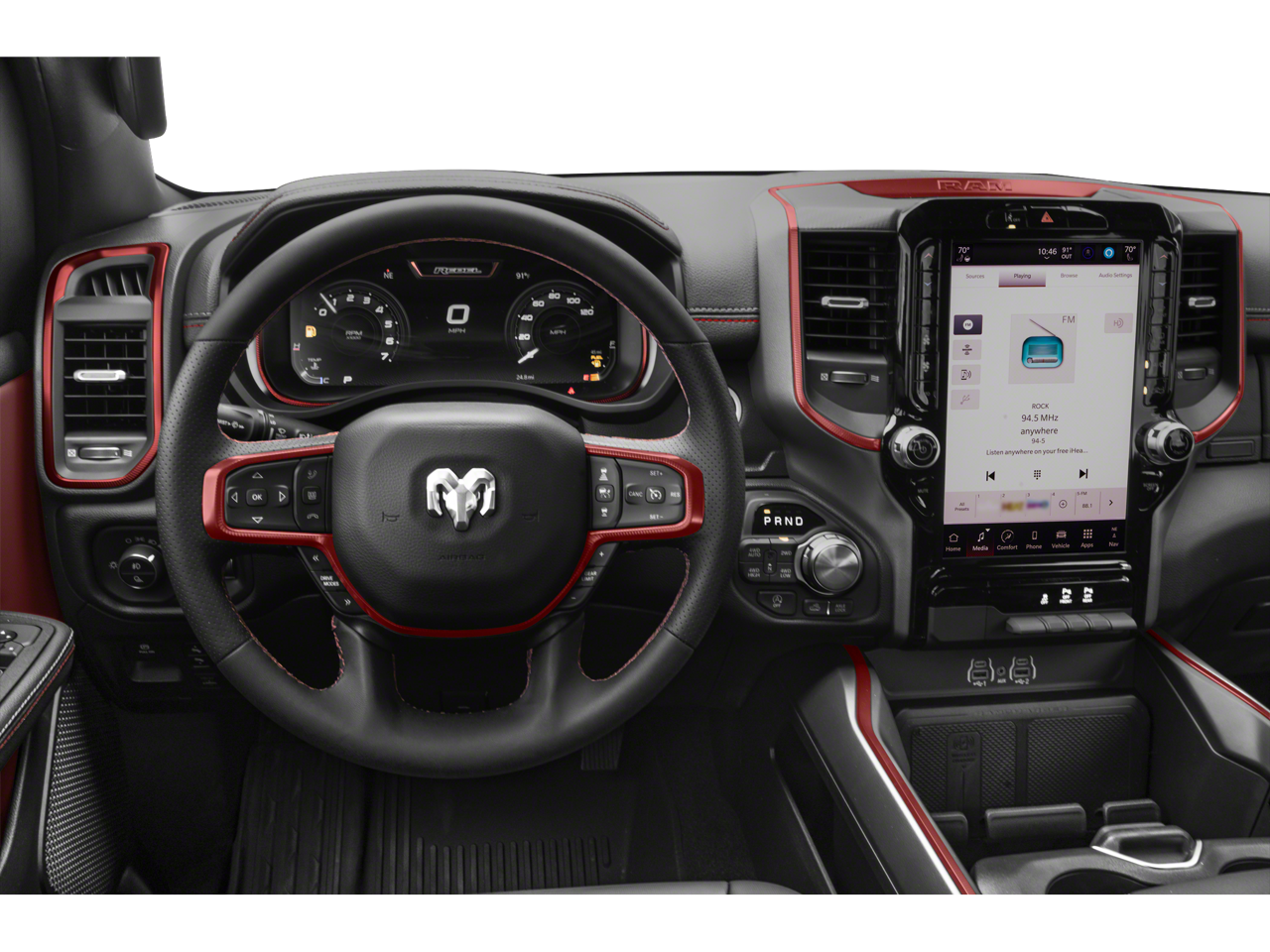 REBEL LEVEL 1 EQUIPMENT GROUP Remote Tailgate Release, Auto Dim Exterior Driver Mirror, Rear Window Defroster, Wireless Charging Pad, Power Adjustable Pedals, Exterior Mirrors w/Supplemental Signals, Exterior Mirrors Courtesy Lamps, Black Premium Power Mirrors, Auto Power-Folding Mirrors, TRANSMISSION: 8-SPEED AUTOMATIC (8HP75) (STD), ENGINE: 3.0L I6 HURRICANE SO TWIN TURBO ESS (STD). Ram Rebel with Billet Silver Metallic Clearcoat exterior and Red/Black interior features a Straight 6 Cylinder Engine with 420 HP at 5200 RPM*.
