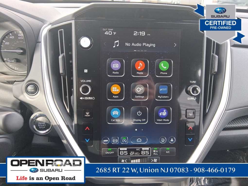 - Radio: Subaru 11.6" Multimedia Plus System -inc: AM/FM stereo, HD Radio, multi-touch gesture high resolution display screen, voice activated controls, Bluetooth® audio streaming and hands-free phone connectivity, Bluetooth® hands-free SMS text messaging connectivity, iPod control capability, SiriusXM w/360L (4 months free trial included/subscription required after), SiriusXM Travel Link (4 months free trial included/subscription required after), smartphone integration: Android Auto and Apple CarPlay w/full screen view and wireless connection, USB and Over The Air (OTA) audio system update, steering wheel audio system and Bluetooth® control switches, 6 speakers (2 dash panel tweeter, 2 front door and 2 rear door), illuminated 3.5mm auxiliary input jack, illuminated front USB A and C input/charge ports and illuminated rear USB A and C charge ports
