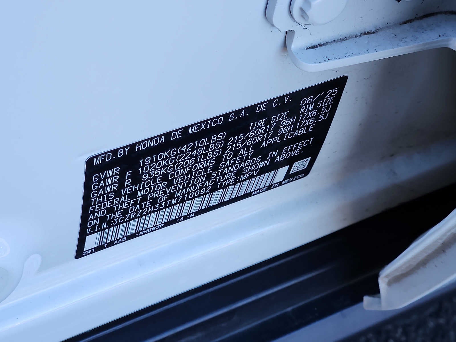 - Vehicle Name: Honda HR-V